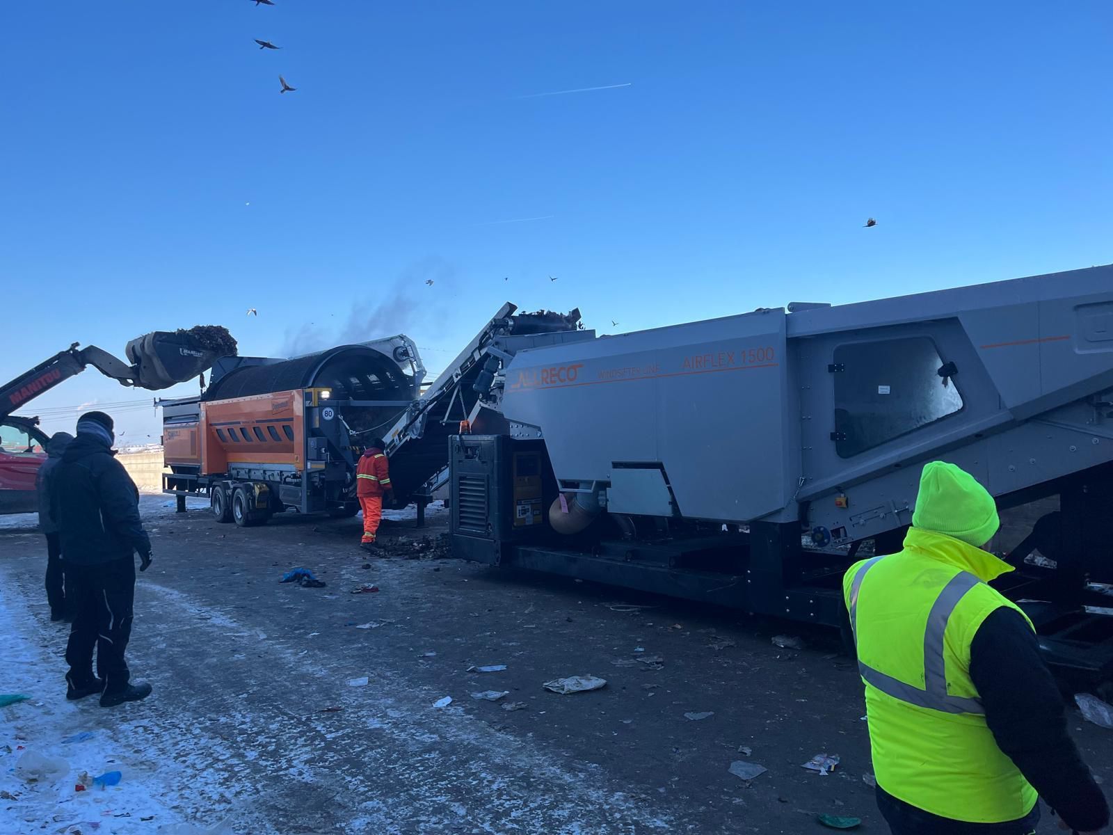 Mobile waste processing line including Doppstadt SM 620.3 Drum screen and Allreco Airflex 1500 windsifter , plus Orkel Hi-X Evo compactor and baler – smart technology, great flexibility, ease of operation and high mobility - played an essential role in maintaining optimized performance.